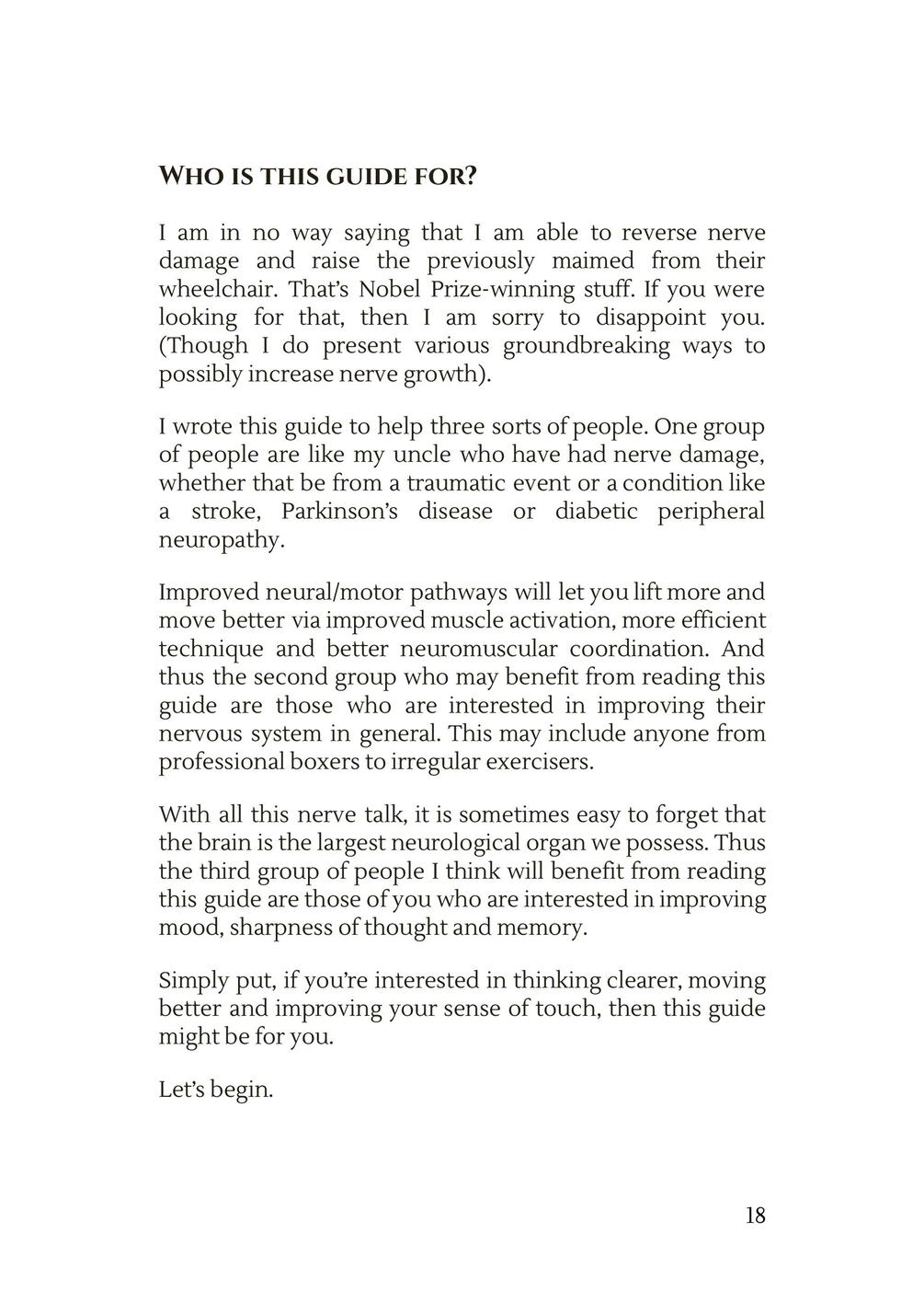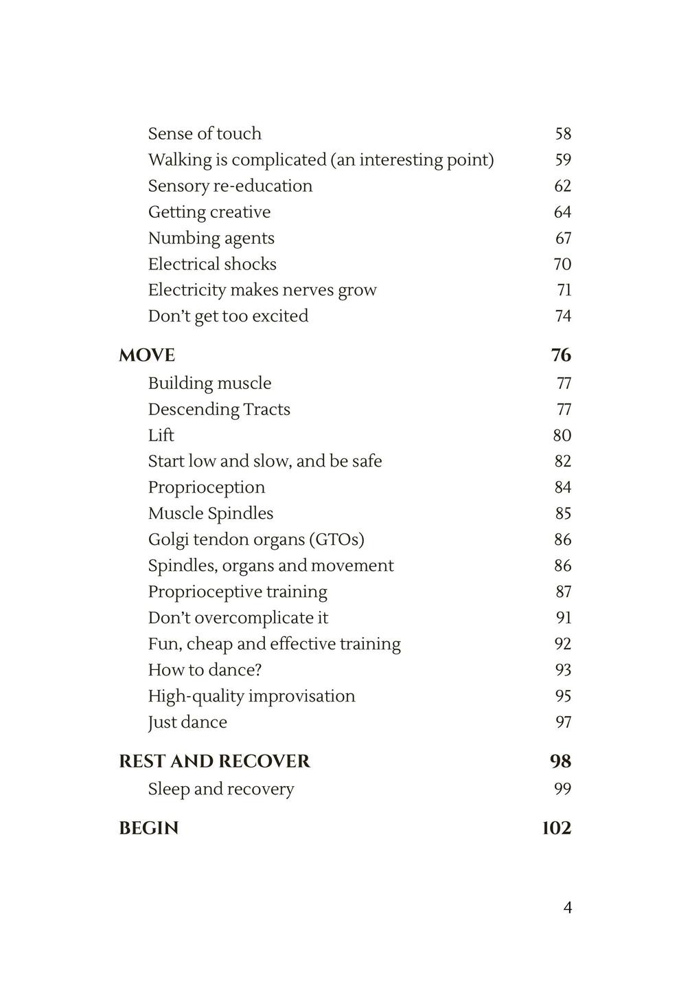 In this book, I go through various scientifically-backed groundbreaking ways to help you improve movement, the sensory feeling of touch and cognition.
