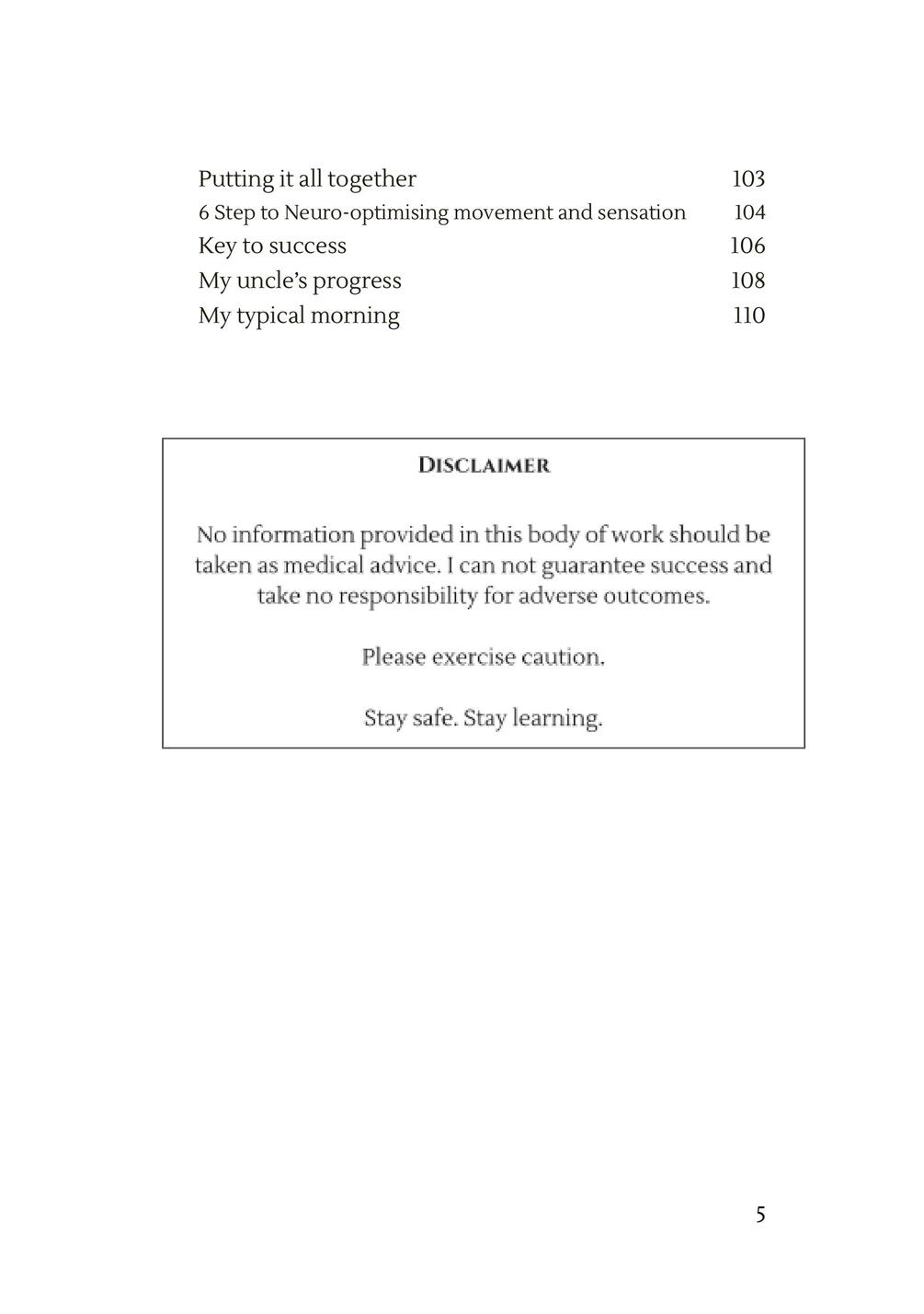 In this book, I go through various scientifically-backed groundbreaking ways to help you improve movement, the sensory feeling of touch and cognition.